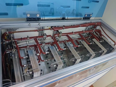 此外,為了排除不同環(huán)境溫度下進料溫度的不同對反應的影響,以及針對某些需要對反應物進行預熱或預冷的反應,本設備還集成了2套彼此獨立的原料預熱(冷)系統(tǒng),能夠將恒流泵輸出的反應介質在進入板式微反應單元之前進行預熱或預冷到設定溫度,提高了實驗的準確性和靈活性。